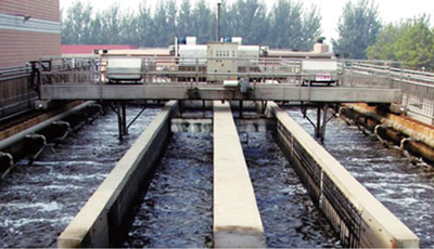 该设备采用移动桥式,当刮泥机不工作时,即停在进水端;当刮泥机工作时,顺水流行驶时,先放下撇渣板,将池面浮渣撇向池端钢制撇渣槽内,而刮泥板被提离池底;反向行驶时,放下刮泥板,将池底污泥刮向池端集泥槽内,而撇渣板被提起,离开液面以防浮渣逆行;依此作往返工作运动,从而达到刮泥、撇渣的目的。