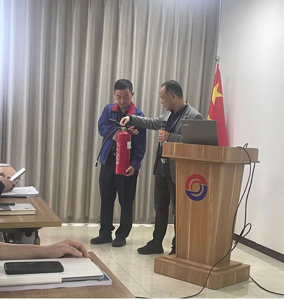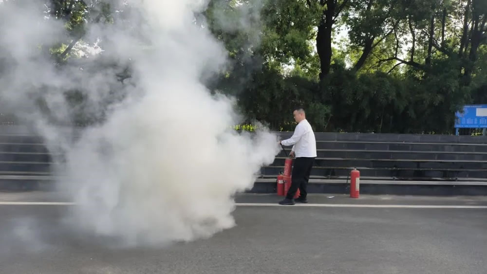 演练过后,在厂区东北角空地开展了干粉灭火器灭火演练,副总指挥张盘新强调了干粉灭火器的使用方法和注意事项,各部门人员均轮流实操。