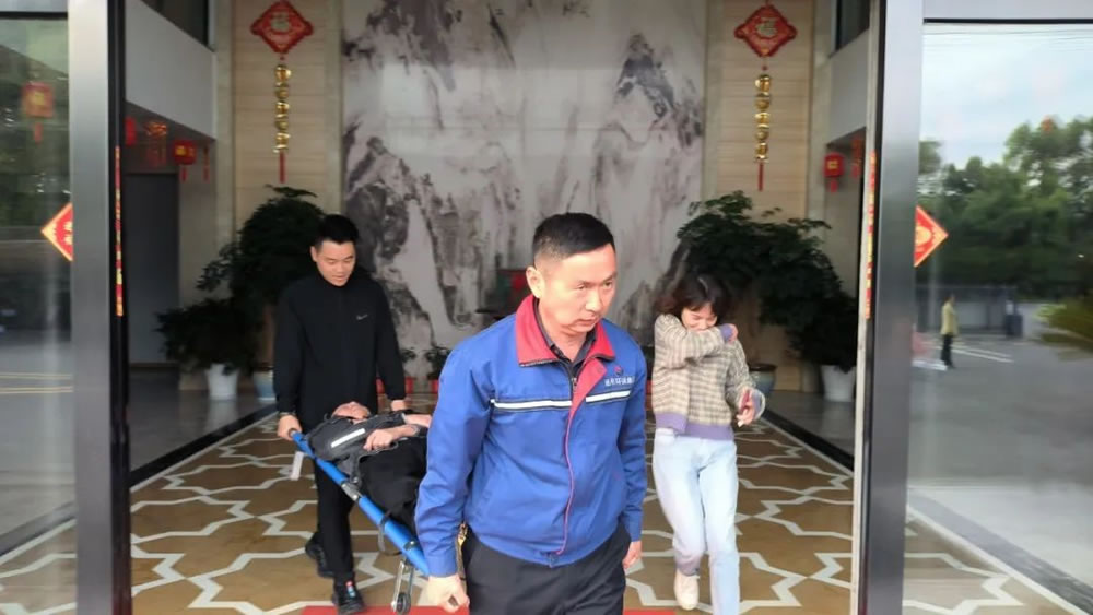 培训结束,消防演练正式开始,总指挥发出启动应急救援预案后,全体人员迅速进入紧急疏散状态,各班组立即进入工作状态:疏散保卫组立即组织大家按照设定的逃生路线,迅速有序地进行紧急疏散,并第一时间撤离到综合大楼正面广场安全区域,各楼层负责人清点本楼层人数;抢险救援组安排专人切断所有电路,就近取灭火器组织灭火,并设立警戒线防止复燃;后勤救护组立即安排专人领取救援设备,对烧伤人员进行转运和包扎,同时联系119和120并安排专人路口等候。