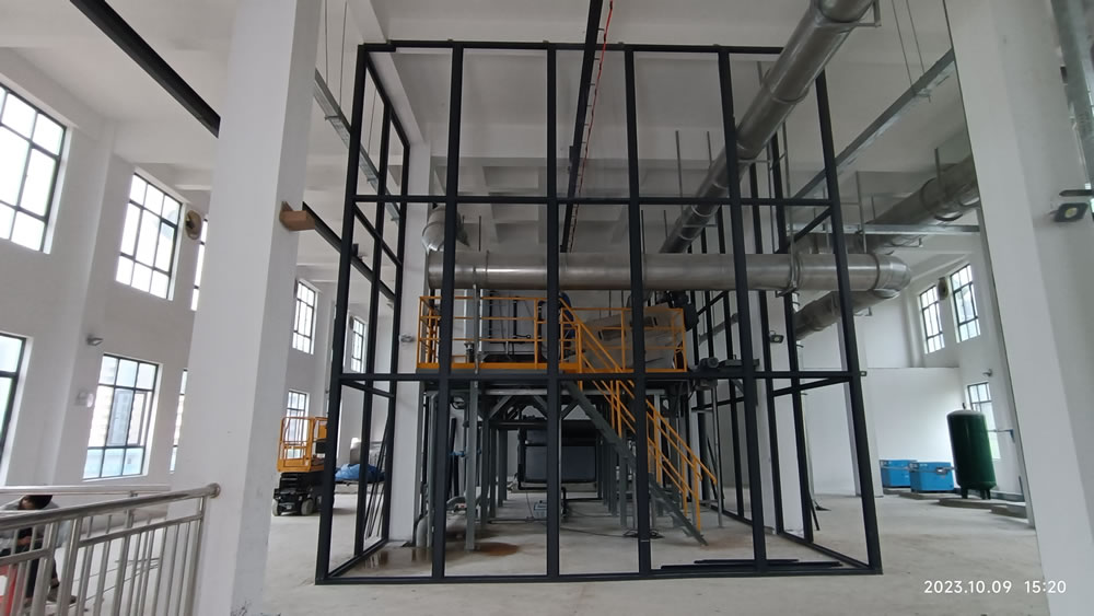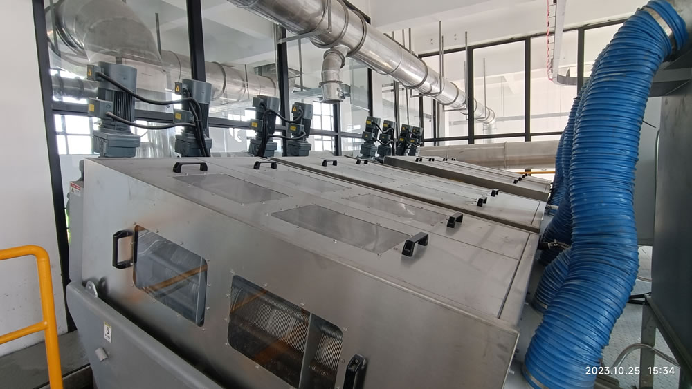 本项目位于广东省惠州市大亚湾开发区,是大亚湾水务集团第二水质净化厂三期工程项目的污泥系统的污泥低温干化工程。污泥干化工艺流程为:储泥池→污泥提升螺杆泵→叠螺机→高压带机→湿料仓、螺旋输送机→切条机→低温干化主机→刮板输送机→干料仓→污泥车运走,出泥含水率小于40%。除臭系统:离子新风系统、生物除臭系统。